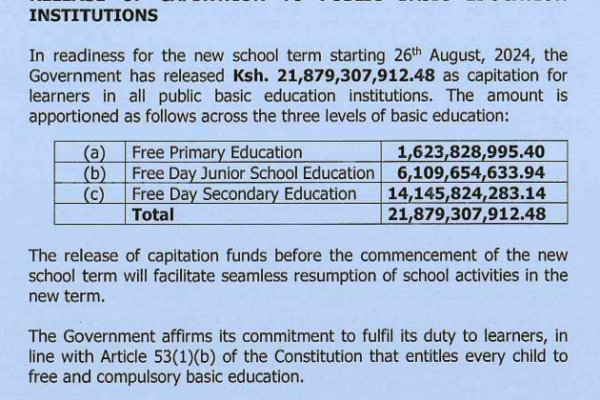 The Mountain Journal Government has released Sh21.8 billion to facilitate free learning in public institutions, with a huge chunk allocated to free day secondary education at Sh14.1 billion. The allocation to learning institutions is affected by the Ministry of Education as schools open on Monday. Education Cabinet Secretary Julius Migos in a circular to direct…